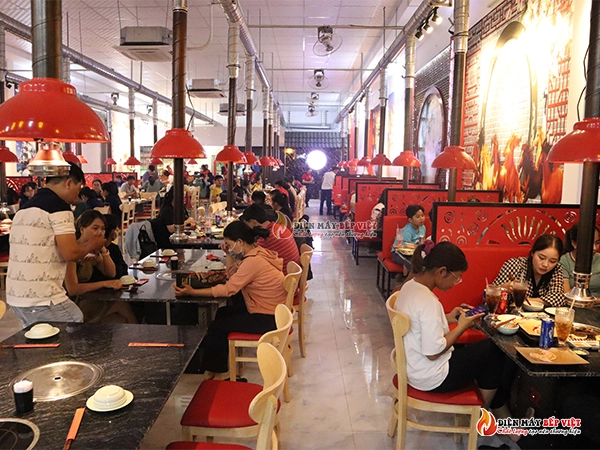 Đối với các quán nướng hiện nay, việc kết hợp bếp nướng chất lượng cao cũng đóng vai trò quan trọng trong việc nâng cao trải nghiệm khách hàng. Trong đó, bếp lẩu nướng Hàn Quốc là lựa chọn phổ biến nhờ thiết kế hiện đại, khả năng kiểm soát nhiệt tốt và tiết kiệm không gian. Sử dụng loại bếp này kết hợp với hệ thống hút khói chuyên dụng sẽ giúp khói và mùi thức ăn được xử lý triệt để, mang đến không gian ăn uống thoáng đãng, sạch sẽ, đồng thời tăng tính thẩm mỹ cho quán. Chủ quán cũng yên tâm hơn về vấn đề vệ sinh và sức khỏe cho nhân viên, đồng thời nâng cao uy tín thương hiệu trong mắt khách hàng.