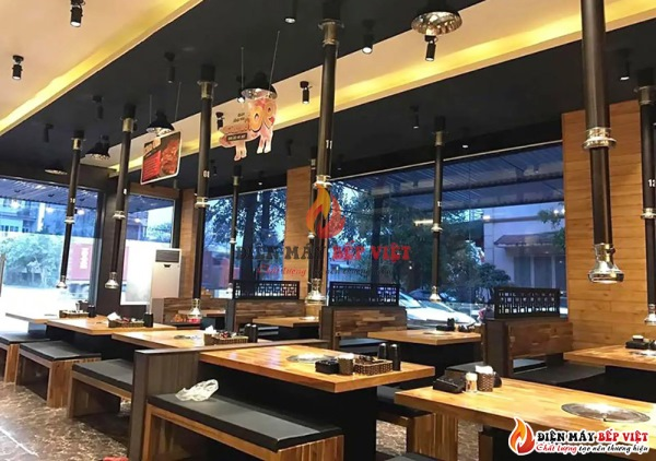 - Quán nướng ngoài trời hoặc bán mở: ưu tiên hệ thống hút khói trực tiếp tại bàn để giảm khói bay lan rộng.
